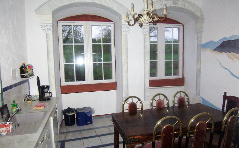 Diese riesige Wohnung im Erdgeschoss des „Fürstenbaus“ des Wasserschlosses in Lohrbach (einst bewohnt von der Kurfürstin Amalie von der Pfalz) können Sie auch für eine Teilbelegung für nur 4 Personen mieten.